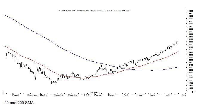 Though Shanghai Composite Index has been charging up, there is little sign that the trend is coming to an end. The probability of a trend reversal remains remote. Short term retracement however, is more likely. This is healthy so as to avoid a collapse in the trend. Several evidences lend credence to this argument.
